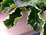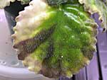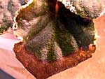 Caused by servere neglect and allowing to dry out. Once the plant is rehydrated this pattern may show up. Remove these leaves and keep the soil moist. |