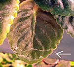 Yellow or Bronze center leaves Stunted, deformed or discolored |